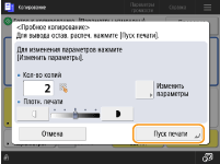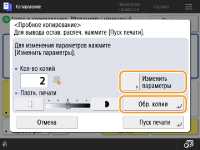 Нажмите кнопку <Изменить параметры>, чтобы изменить параметры. После внесения изменений в параметры отобразится <Образец копии>. Снова напечатайте образец копии.
