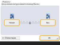 Задайте резкость <Высок.>, если хотите копировать текст или изображение, содержащее тонкие линии. Задайте резкость <Низкий>, если хотите копировать напечатанные фотографии или другие изображения, содержащие полутона.