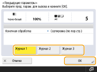 Если используется управление аутентификацией для личных пространств, аппарат вызовет параметры, заданные пользователем во время его предыдущего входа в систему аппарата.