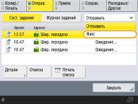 (Стоп), чтобы отобразить экран для выбора задания отправки, которое нужно отменить. Если задание печати, которое нужно отменить, не отображается, нажмите <Провер. др.задания>, чтобы отобразить <Задания на отпр.>. Выберите задание, которое требуется отменить, и нажмите клавишу <Отмена>. |