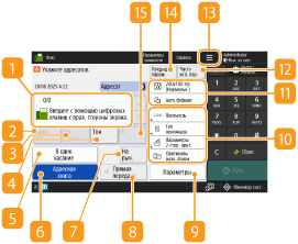В этой области представлены сведения о состоянии параметра, такие как разрешение. Подтвердите параметры, чтобы сканирование было выполнено должным образом. Для изменения параметров нажмите соответствующую кнопку. Основные операции отправки факсов