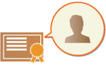 Ключ и сертификат (сертификат пользователя), которые требуются для добавления подписи пользователя, можно зарегистрировать через Remote UI (Удаленный ИП). Следует назначить администратора, ответственного за регистрацию ключей и сертификатов. После этого на отсканированные документы, отправляемые в виде файлов определенного формата, можно добавлять цифровую подпись пользователя, вошедшего в систему аппарата с помощью функции управления аутентификацией для личных пространств. Добавление цифровой подписи