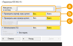 Нажмите <Выкл.> для параметра <Использовать TLS>, а затем нажмите кнопку <Далее>.