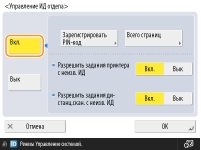Можно также установить требование к обязательному вводу семи цифр для ИД отделов и PIN-кодов. Для получения дополнительных сведений обратитесь к своему дилеру или представителю сервисной службы.