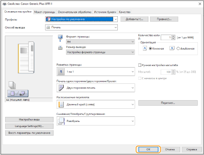 Укажите необходимые параметры печати и нажмите кнопку [ОК].