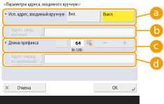 В разделе <Вкл.> нажмите кнопку <Исп. адрес, вводимый вручную> и настройте необходимые параметры.