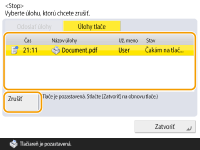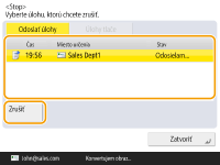 (Stop), keď sa spracováva úloha odosielania alebo tlače a zobrazuje sa obrazovka, ktorá vedie k oknám <Odoslať úlohy>/<Úlohy tlače>, odchádzajúca úloha odosielania alebo tlače sa pozastaví a zobrazí sa okno <Odoslať úlohy>/<Úlohy tlače>.