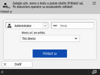 v pravej hornej časti obrazovky prihlasovania. <Zobraziť tlačidlo na zmenu hesla v menu Nastavenia>Môžete nastaviť, či sa má vyrovnávacia pamäť prihláseného používateľa uložiť alebo vymazať. <Počet vyrovnávacích pamätí pre prihl. užív.>