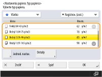 Ak sa vložený typ papiera nezobrazuje, stlačte tlačidlo <Podrobné nastav.> a vyberte ho zo zoznamu.