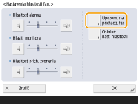 Aj keď je prichádzajúci tón nastavený na <Vyp.>, prichádzajúci tón sa prehrá po príchode faxu v režime spánku, ak je spotreba energie v režime spánku nastavená na nízku. <Spotreba energie v nečinnom režime>
