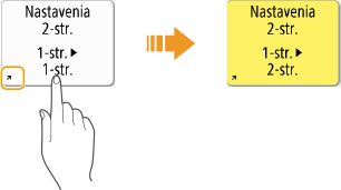 Operácie potiahnutia prstom a presúvania ťahaním nie je možné použiť, ak je položka <Invertovať farby obrazovky> nastavená na <Zap.>. <Invertovať farby obrazovky>