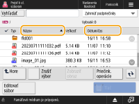 Keď sa v zozname nachádza viac úloh alebo súborov, stlačením tlačidla <Názov> alebo <Dátum/čas> môžete zoradiť zoznam položiek. Keď sa zobrazuje symbol