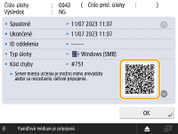 Keď sa v okne Details (Podrobnosti) výpisu chýb zobrazí kód QR, naskenovaním kódu QR pomocou mobilného zariadenia, napríklad smartfónu alebo tabletu, získate prístup na stránku dokumentu Užívateľská príručka pre toto zariadenie, kde sa dozviete, ako chybu ošetriť.