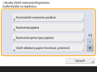 (Nastav./Uložiť), môžete uložiť skratky v časti <Skratka Nast./Registrácia>. Vďaka tomu môžete rýchlo zobraziť aj nastavenia, ktoré sú nakonfigurované hlboko v hierarchii ponuky.