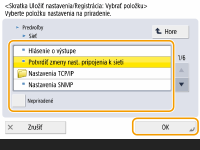 Ak sa položka <Skratka Nast./Registrácia> nezobrazuje na obrazovke <Domov>, stlačte tlačidlo