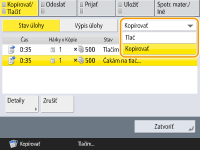(Stop) na ovládacom paneli, takže sa zobrazí správa <StopVyberte kopír. úlohu, ktorú chcete zrušiť.> a zoznam úloh kopírovania, posledná úloha, ktorú vykonal odhlásený používateľ, sa zruší a obnoví sa vykonávanie ostatných úloh. |