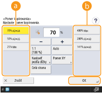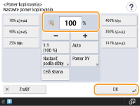 Môžete vykonať zväčšenie alebo zmenšenie špecifikovaním pomeru kopírovania (%). Môžete individuálne špecifikovať vertikálny a horizontálny pomer.