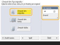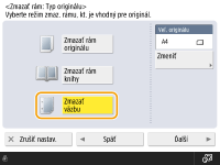 Stlačte tlačidlo <Zmazať rám originálu> a nastavte <Veľ. originálu>.