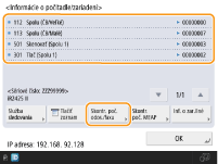 Taktiež môžete skontrolovať informácie počítadla, ktoré sa týkajú každej aplikácie MEAP. Na obrazovke v kroku 2 stlačte tlačidlo <Skontr. poč. MEAP>. Ak na rovnakej obrazovke stlačíte tlačidlo <Inf. o zar./Iné>