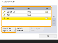 Ak chcete používať kľúč a certifikát, ktoré získate od certifikačnej autority (CA), zaregistrujte ich ešte pred vykonaním nižšie opísaného postupu. Registrácia kľúča a certifikátu