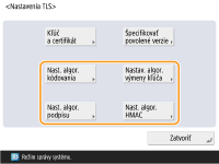 Ak v položke <Metóda kódovania formátu na FIPS 140> nastavíte možnosť <Zap.>, môžete zabezpečiť zhodu metódy šifrovania komunikácie TLS s normami FIPS (Federal Information Processing Standards) 140 schválenými vládou USA. <Metóda kódovania formátu na FIPS 140>