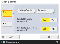 Prihlásenie pomocou ID oddelenia a kódu PINPo uložení používateľa s rovnakým menom ako ID oddelenia sa možno prihlasovať pomocou zaregistrovaného ID oddelenia a kódu PIN. Registrácia používateľských údajov do lokálneho zariadenia