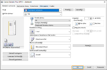Podľa potreby špecifikujte nastavenia a kliknite na tlačidlo [OK].