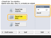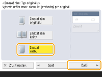 Stlačte tlačidlo <Stred> alebo <Strany> a zadajte všetky šírky zmazania.