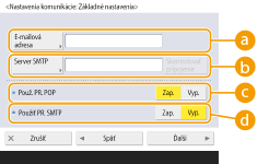 Nastavte možnosť <Zap.>, ak chcete nastaviť zariadenie ako server SMTP na príjem e-mailov a I-faxov. Pozor, príjem cez SMTP nie je možný, ak nezaregistrujete názov hostiteľa zariadenia na server DNS.