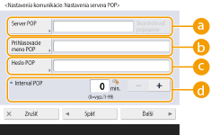 Keď je v Remote UI (Vzdialené užívateľské rozhranie) zadaná možnosť [POP Password], ak chcete zmeniť a zaregistrovať adresu servera v položke [POP Server], je potrebné zadať heslo do položky [POP Password].