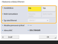 Vyberte položku <10BASE-T>, <100BASE-TX> alebo <1000BASE-T> v ponuke <Typ siete Ethernet>.