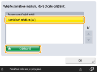 Vyberte pamäťové médium, ktoré chcete odpojiť, a stlačte tlačidlo <Odstrániť>.