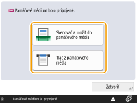 Ak je položka <Vybrať voľbu pri pripájaní pamäťového média> nastavená na možnosť <Zap.>, po vložení pamäťového média sa zobrazia skratky pre dostupné funkcie. <Vybrať voľbu pri pripájaní pamäťového média>