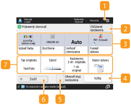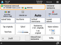 Keď stlačíte tlačidlo <Skenovať a uložiť> na obrazovke <Domov> a potom stlačíte tlačidlo <Sieť> alebo <Pamäťové médium> na skenovanie originálov, zobrazí sa nasledujúca obrazovka nastavenia.