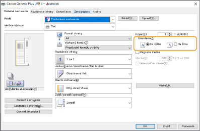Na obrazovke ovládača [Základné nastavenia] nastavte položku [Orientácia] na rovnakú orientáciu, ako ste nastavili v kroku 1.