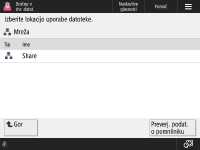 Zaslon za izbiro shrambe