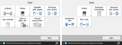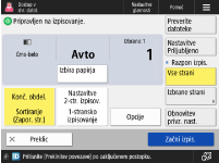 Nekateri načini, opisani tukaj, se nanašajo na način funkcije <Kopiranje>.