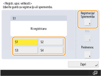 Izberite gumb od <S1> do <S4> in pritisnite <Reg./Sprem.>.
