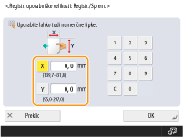 Vnesite dolžino strani <X> in strani <Y>. Pritisnite <X> ali <Y>, da s številskimi tipkami vnesete dolžino obeh stranic.