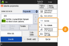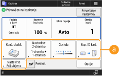 Zaslon z osnovnimi funkcijami kopiranja
