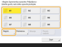 Če želite izbrisati registrirane nastavitve, izberite gumb in pritisnite <Brisanje>.