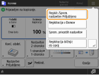 Pritisnite <Kopiranje> in določite nastavitve, ki jih želite registrirati.