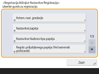 ![]() <Nastavitve ureditve zaslona Domov> <Omejitev prikaza funkcije> <Nastavitev> nastavite prikaz možnosti <Bližnjica Nast./Registr.>.Bližnjice, ki jih je mogoče registrirati: 10