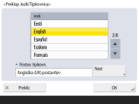 Spremenite lahko jezik, prikazan na zaslonu na dotik in tipkovnici.
