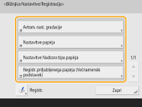 (Nastavit./Registr.). Če pogosto uporabljate element nastavitve, ki je na voljo globoko v nastavitvi, lahko z bližnjico za ta element hitro preklopite prikaz.