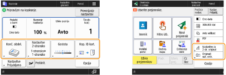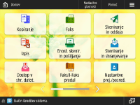 Spremenite lahko gumbe za nastavitve na zaslonih z osnovnimi funkcijami (za kopiranje, pošiljanje faksov in optično branje). Prav tako lahko prikažete različen zaslon z osnovnimi funkcijami, ki je prilagojen posameznemu prijavljenemu uporabniku.