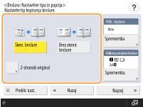 Ko kopirate knjižico z dvostranskimi izvirniki, pritisnite <2-stranski original> in po potrebi izberite <Knjiga> ali <Koledar>.