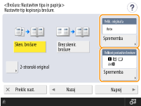Pritisnite <Sprem.> v možnosti <Velik. originala> in izberite velikost izvirnika. Če izberete <Avto>, se velikost knjižice samodejno izbere glede na velikost izvirnika.