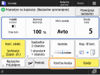 Odvisno od števila kopij in nastavitev se prikaže <Vzorčna kopija>, da lahko s tiskanjem vzorca kopije preverite rezultat kopiranja. Preverjanje rezultatov kopiranja