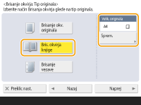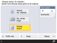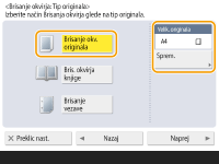 Pritisnite <Brisanje okvirja originala> in nastavite <Velik. originala>.